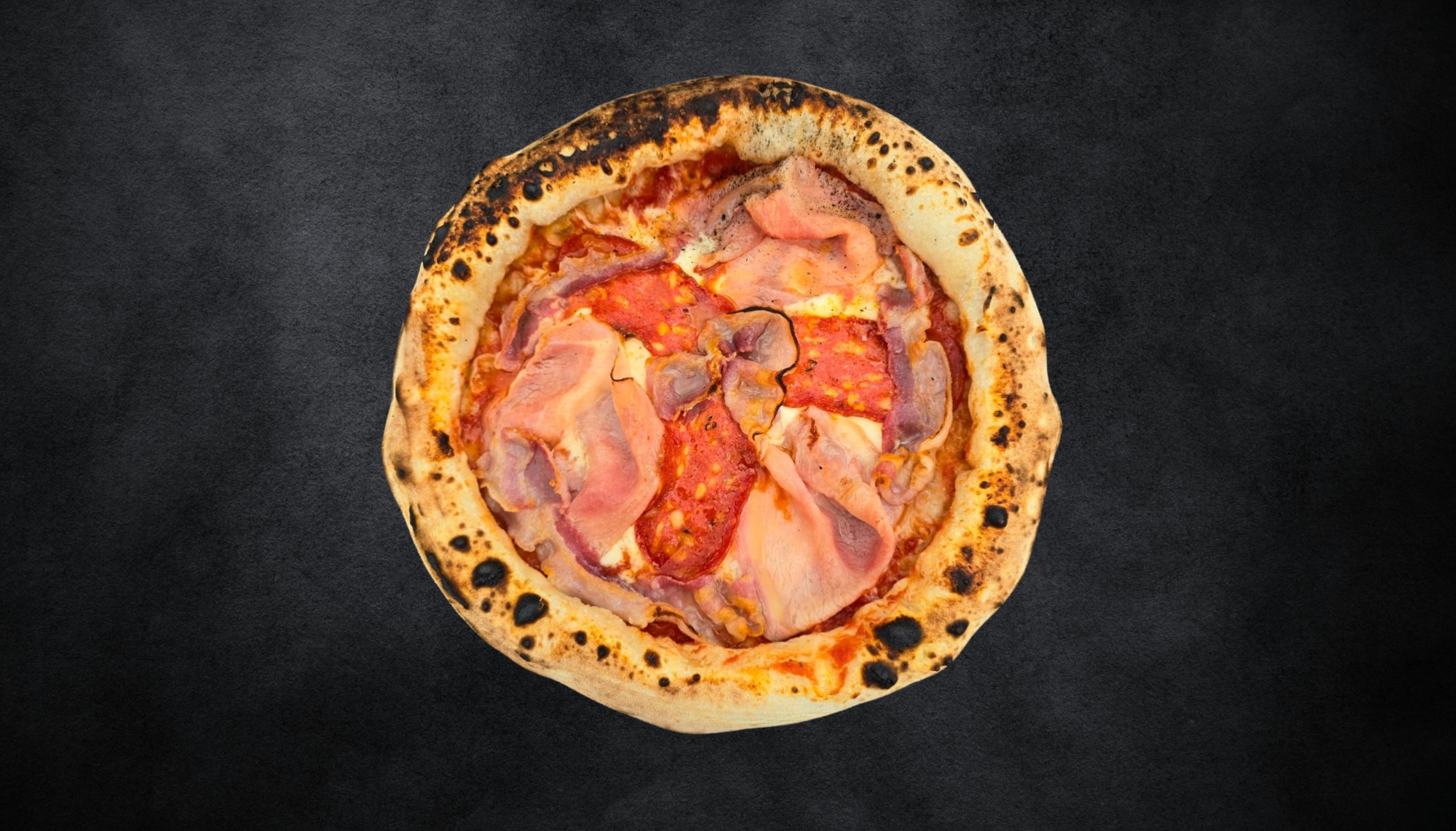 pomidory di marzano, mozzarella fdl, pancetta , spianata piccante, cebula, peperoncino